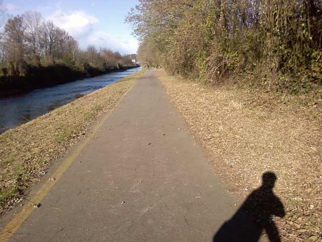 E’ bella questa strada, quasi interamente ciclabile, sempre pianeggiante, sempre a fianco del Naviglio. Ci sono chiuse, persino anse, dopo Boffalora, talvolta addirittura una chiatta o un barcone. Silenzio, pescatori, qualche buffo cane a spasso per i fatti suoi, incurante del padrone.