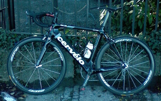 Altri 10 minuti di ovazione per la nuova, inconcepibile, imbarazzante, pericolossissima belva tarantolata (che vedete in foto lassopra). Il Pitone questa volta ha fatto davvero il vuoto. Ruote ad alto profilo con cerchio in carbonio e mozzo in alluminio, telaio da peso illegale (inferiore a quello consentito dai termini UCI), Dura Ace con passaggio cavi interno, reggisella imbarazzante e sagomato: più volte mi son scoperto a guardargli il culo.
