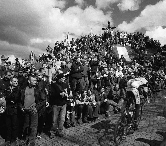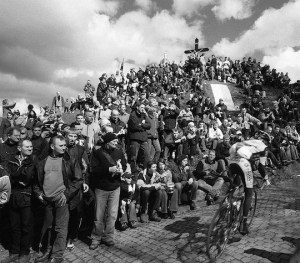 Qui, in cima, c’è anche il canto gregoriano dei fedeli ad attendere l’apparizione del ciclistapericoloso. E’ domenica, la messa è servita.