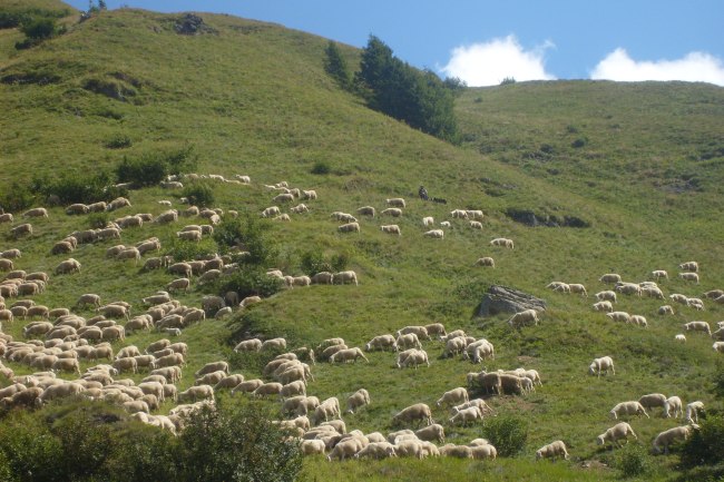 Pecore lungo la discesa verso Canazei.