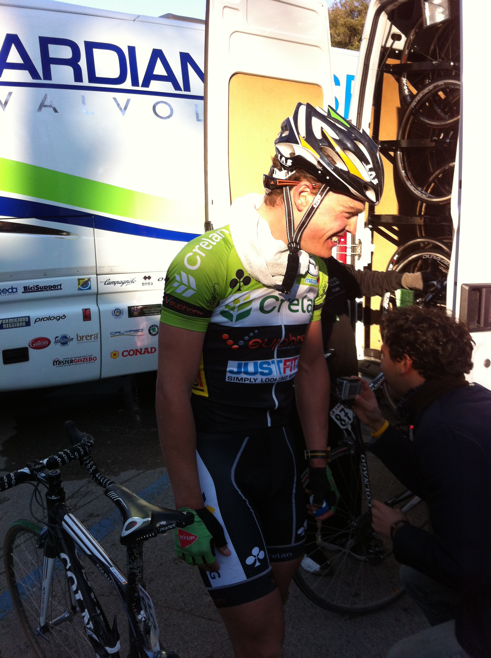Ed è tra gli autobus, tra i motorhome della Cannondale o del team Radioschack. Dietro le mura di un Siena avvolta e commossa dallo spettacolo.