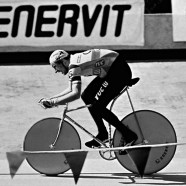 Ma tornando al record dell’ora del 1984 (l’apice del film), una cosa mi ha colpito particolarmente: la cura, come dicevo, quasi ossessiva, per i particolari nella preparazione di Moser. Quasi quello fosse un esperimento e non un atleta, e in parte lo era. Fondamentale fu allora trovare un partner all’avanguardia assoluta capace di fasi carico, con la sua esperienza nella ricerca e nella nutrizione, dell’impresa. Fu il caso felice dell’Equipe scientifica Enervit. Un unicum nel suo genere. Nel film “Moser, scacco al tempo” vengono mostrati tutti i dettagli di quell’incredibile lavoro di squadra: dallo studio della preparazione (il record venne stabilito in altura, a 2000 metri di quota) all’alimentazione, persino al casco e alla celeberrima tutina aerodinamica. Anche qui avanguardia assoluta. Per tacere della bicicletta, delle ruote lenticolari: con la posteriore di diametro maggiore dell’anteriore. Praticamente Moser era un astronauta tutt’uno con la sua astronave. Il lavoro di squadra avrebbe mandato in orbita il 19 gennaio del 1984 uno shuttle avveniristico, non un semplice ciclista. Una nave del futuro, con a bordo il suo capitano “generoso”.