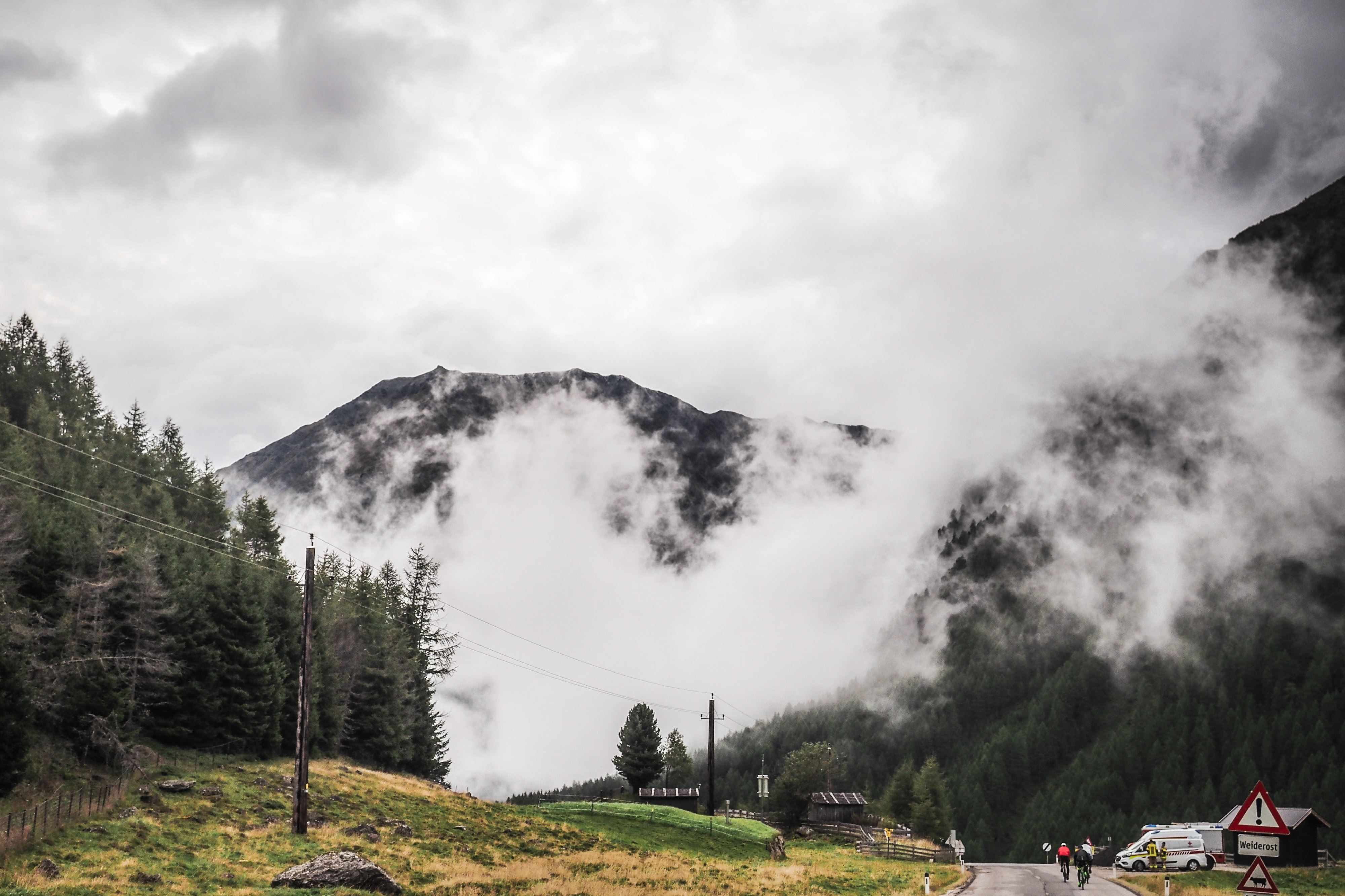 Pochi, sostanzialmente assenti del tutto, gli sprazzi di sole, forse solamente nel tratto italiano di gara: da Vipiteno a Moso in Passiria, ma non è nemmeno detto. 3 gradi alla partenza, zero sopra i 1800 metri. Insomma c’è da prepararsi al peggio. Ma chi viene a questa gara, sa benissimo che le probabilità che tali condizioni si verifichino, a fine agosto, sono molto alte. È quasi l’eccezione trovare bel tempo: qualche anno fa l’ho fatta senza nemmeno una nuvola dall’inizio alla fine. E infatti quella (era il 2015) viene ricordata anche come l’unica edizione dell’Ötztaler Radmarathon con il sole lungo tutti i 238 chilometri di corsa. Un evento che non si ripeterà mai più. Fu la mia prima volta, rimasi sbalordito e probabilmente anche illuso dal fatto che fossi riuscito a portarla a termine senza trasformarla in un calvario. In molti addirittura, in quell’edizione, avevano patito il caldo afoso, irreale per quelle quote, diversi concorrenti in preda ai crampi per disidratazione, nei campi con la bici abbandonata, ad abbozzare posture innaturali. Vedere arrivare quella sera, ben dopo il tramonto, gli ultimi concorrenti sotto una stellata da urlo e con una falce di luna in mezzo alle tenebre fu un’emozione surreale. Nell’immaginario dei finisher di questa corsa c’è sempre l’arrivo degli ultimi con un tempo da lupi, concorrenti fradici e infreddoliti, coperte termiche che li avvolgono, pianti isterici o di gioia, persino qualche mancamento, a volte l’ambulanza con flebo pronta all’uso. Quella volta invece il destino ci regalò una giornata da incorniciare, dove ogni foto scattata sembrava degna di finire sulla copertina del National Geographic. Non ci furono infatti solamente il sole e una temperatura anomala, quel giorno, ma anche una visibilità pressoché perfetta: la cima della Palla Bianca, inconfondibile montagna tirolese che appare verso la fine sullo sfondo mentre si sale il passo del Rombo da San Leonardo in Passiria, fu credo la più instagrammata della giornata tra le vette alpine. Fu per tutti un’autentica manna quella volta, i veterani sbalorditi, mai si erano nemmeno sognati un giorno di trovare condizioni meteorologiche del genere, da fare persino invidia a chi era ai Caraibi sulla spiaggia con un cocktail in mano. Avrei persino potuto giurare che qualcuno, se ci avesse visti in quel momento, mentre procedevamo ordinati lungo i tornanti senza nemmeno fiatare, ci avrebbe invidiato. Avrebbe voluto, per una volta, almeno un po’, provare in prima persona quelle stesse nostre sensazioni eroiche, quelle che nessuno dei non-concorrenti riesce a spiegarsi razionalmente. Quelle che dovrebbero rispondere in quattro e quattr’otto alla fatidica domanda: ma chi te lo fa fare?