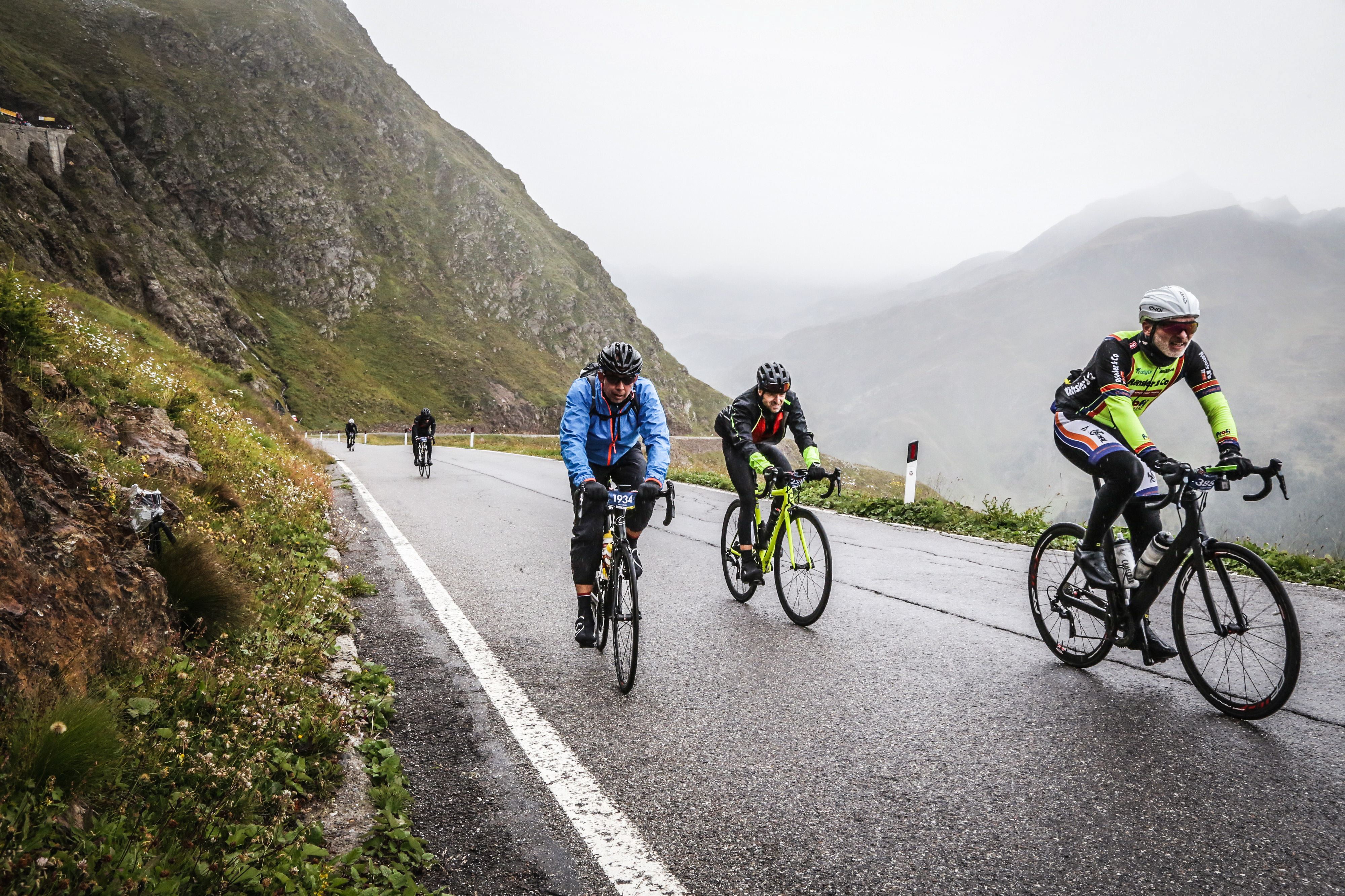 Qui a Sölden i concorrenti, quando fa brutto, assumono la sua stessa espressione: sono anche loro tanti piccoli Tassi che scavano buche nella tempesta delle Ötztaler Alpen, che alzano il bavero contro le intemperie e tirano dritti magri con un passamontagna di lana grezza in testa. Vanno avanti, affrontando i marosi come vecchi lupi di mare temprati. I più intimiditi, ma che acquistano coraggio via via, chilometro dopo chilometro, sono i neofiti, le matricole della gara: coloro che partecipano all’Ötztaler per la prima volta.