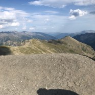 Il cucuzzolo della montagna, la vera e propria cime de la Bonette, è un ammasso di pietre scure e levigate dal vento, che ricordano vagamente una distesa vulcanica. L’Etna, dove non sono ancora stato in bicicletta, mi dicono sia così. Le raffiche qui sono persistenti e molto forti, capaci di scaraventarti a terra con la bici. Fatichiamo non poco a rimanere in equilibrio e a guadagnare il punto più alto. Sento il fiato che si fa sempre più in corto e le pulsazioni che salgono impazzite, sono abbondantemente fuorisoglia. Max, dietro di me, prende a imprecare. Un modo come un altro per esorcizzare i crampi e la paura di non farcela.