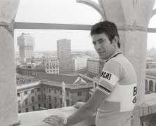 Noi oggi però, mentre pedaliamo tra le fronde di Sombreno di Bergamo, Nuvola Rosa lo immaginiamo in maglia azzurra con la scritta bianca su fondo nero “Salvarani”, la S grande, e in testa il suo fedele ed elegantissimo cappellino bianco. Una silhouette esteticamente ineccepibile. E ancora oggi – non a caso – quella maglia, realizzata con i medesimi tessuti in lanetta di allora, viene riprodotta e venduta online insieme ad altri cimeli del grande campione sedrinese. A comprarla ci sono appassionati di tutto il mondo.